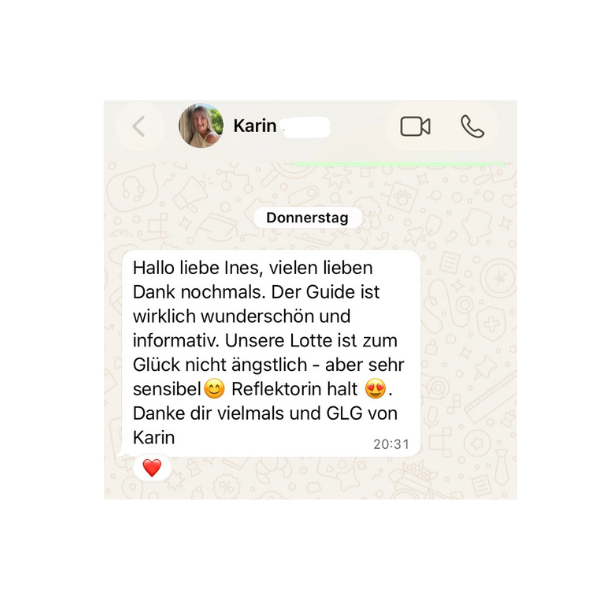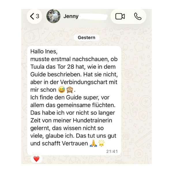 Denn dein Hund orien­tiert sich an deiner Energie. Wenn du klar bleibst, kann auch sein Nerven­system sich regulieren. Und genau das lernst du im Guide.